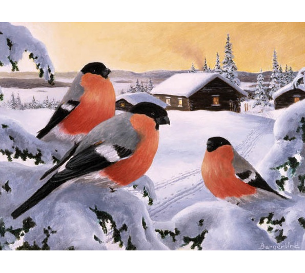 Christmas Jul cards - Bullfinches