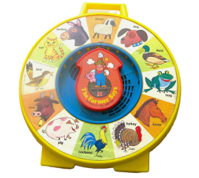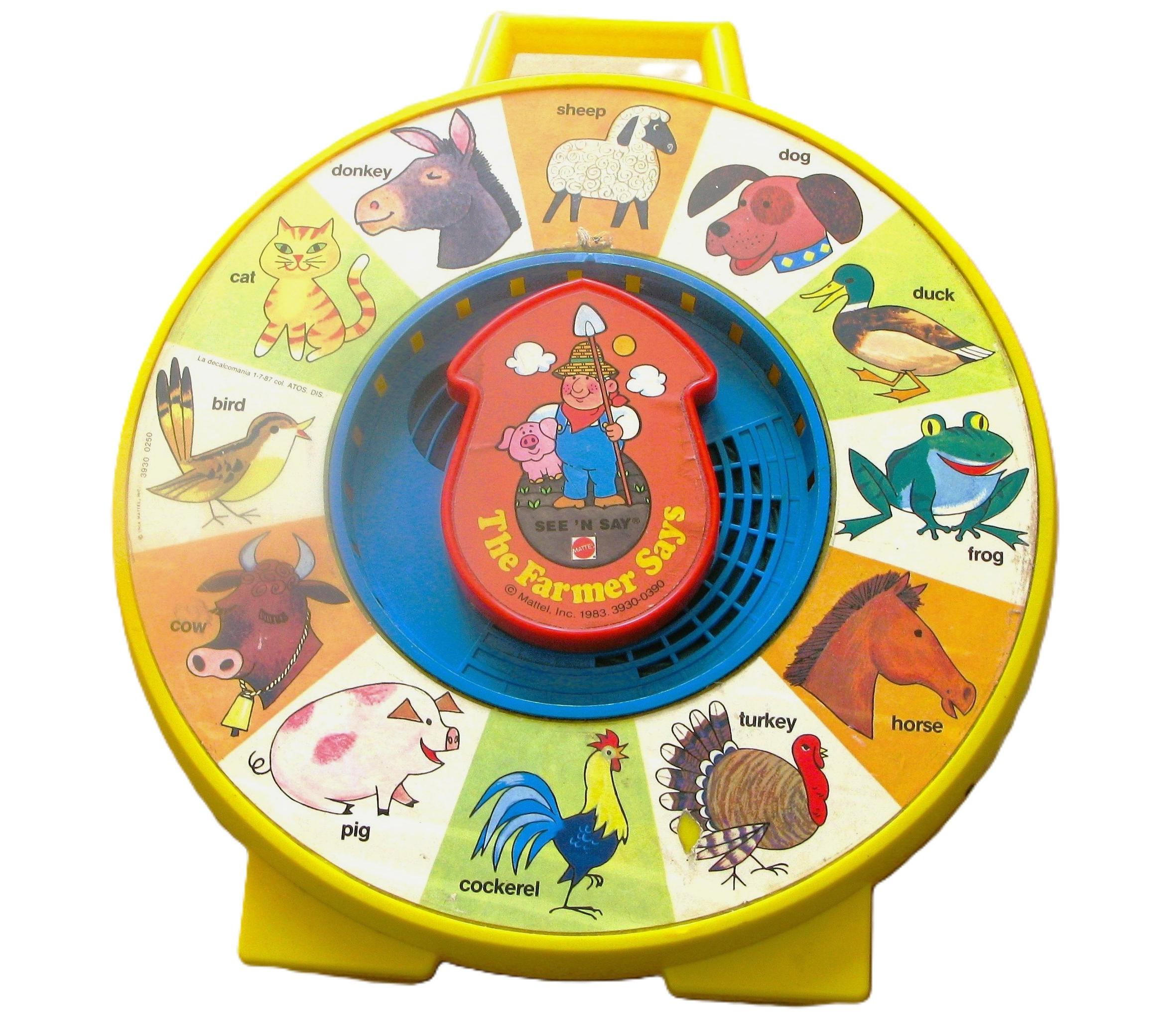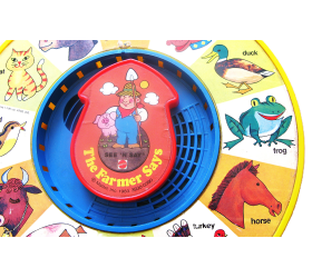 This is a Mattel vintage toy that makes animal noises when the pointer lands on an animal but the string is missing. A project to restore.