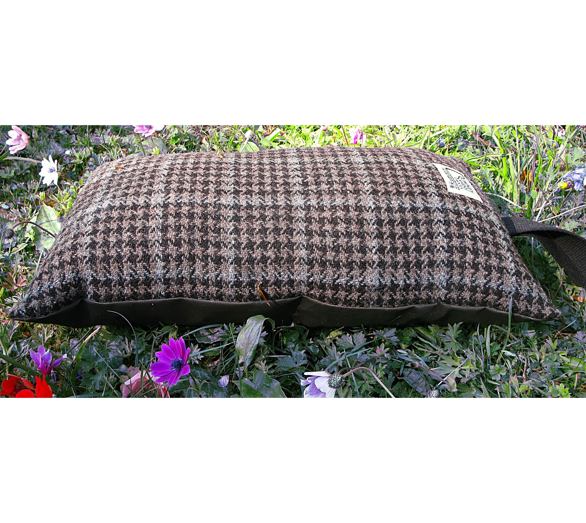 Stylish and practical Garden Kneeler covered with 100% British Romney Marsh wool has a waterproof and dark tough backing and a useful web carry handle. Stuffed with 100% British Wool. This Garden Kneeler makes gardening little more comfortable and is a useful item and a great gift for anyone who likes to garden.