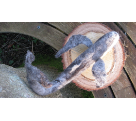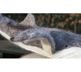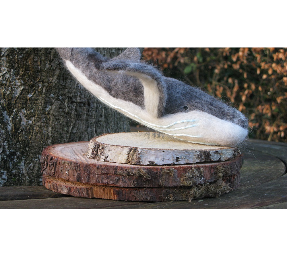 We called our Whale Humphrey because he did exist and needed our help. Twice he deviated from his Mexico to Alaska migration by entering San Francisco Bay - behavior is unusual for a humpback whale and attracted wide media attention when entering the bay in both 1985 and 1990. Both of his bay incursions resulted in rescue by the Marine Mammal Center because he became trapped - the second time in a large Cargo net.Our Whale was made for an Auction to raise funds for World Cetaceance Alliance in Brighton to raise awareness of Ghost Netting in the Sea. We bid on him ourselves. Our whale has an Ipad Display Stand and feels very soft as made from Merino and Finnish wool on a metal frame. It took us about a week and lots of wool to produce Humphrey - one of the biggest animals made by us, so far.