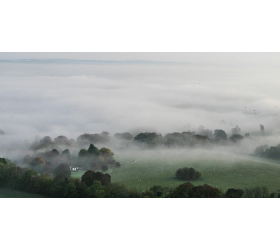 Favorite view from top of the south downs looking towards sussex stretching out below. It was a misty day and sheep appeared as small white snowflakes below.