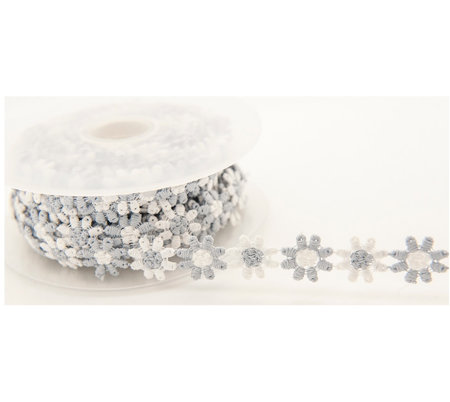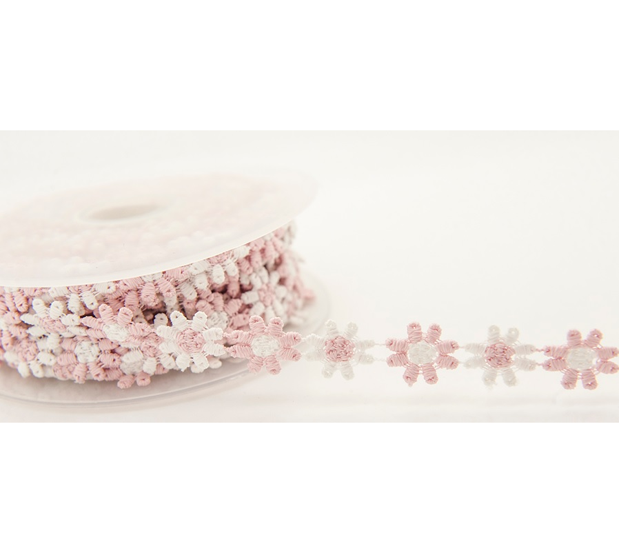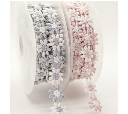 One meter of 15 mm Daisy Trim in Pink and White and Grey and White