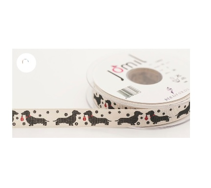 Rustic Ribbon with sausage Dog and Ball - 15 mm wide. Sold in 2 metre lengths